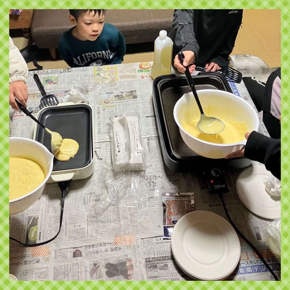 真庭学習会を運営している中高生たちが中心となって、小学生を招いてピザ作り、ホットケーキ作りをしました🌟