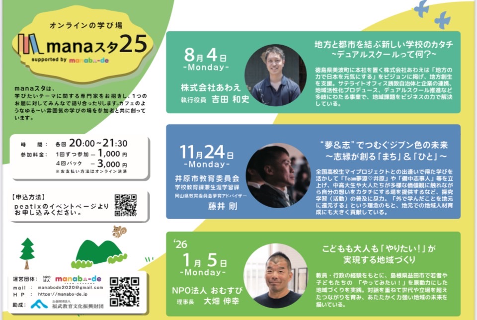 株式会社あわえの執行役員 吉田和史さんによる「地方と都市を結ぶ新しい学校のカタチ」について参加者と対話を深めながら学び場を創出します!